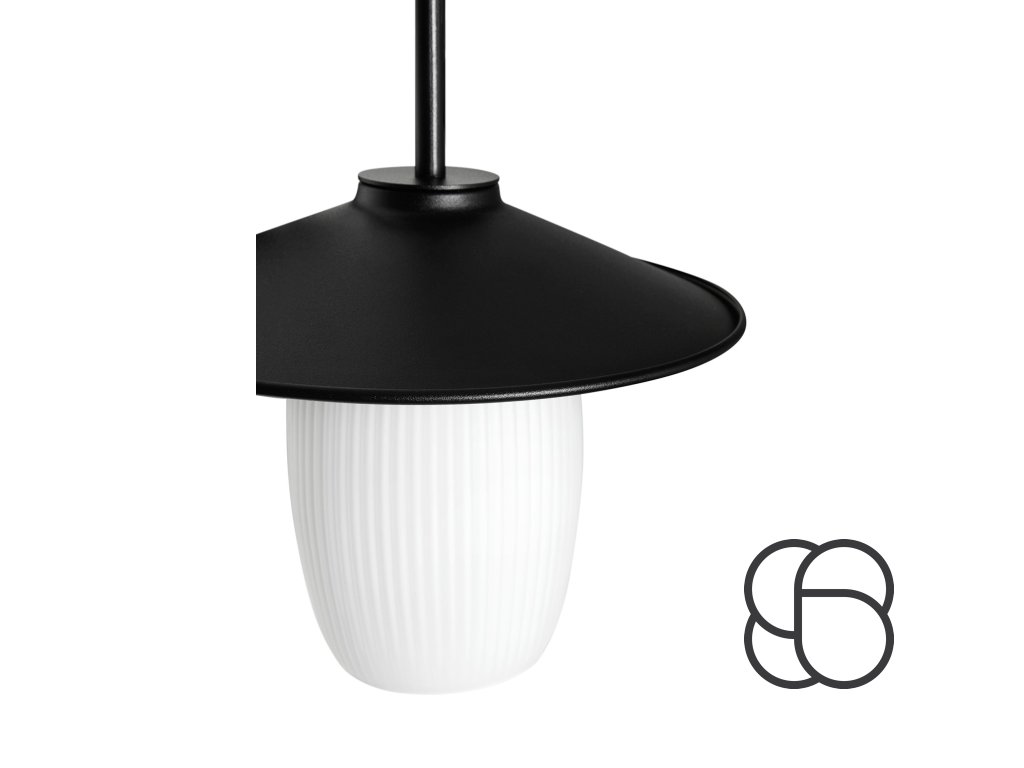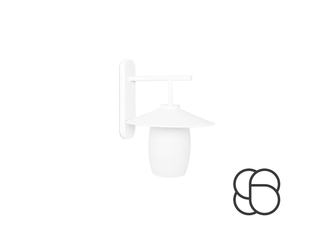 Nástěnné designové svítidlo/lampa JINGU B s kovovou základnou, hladkým kovovým krytem a stínítkem z žebrovaného mléčného skla. Vyrábí se ve 2 variantách černá a bílá.