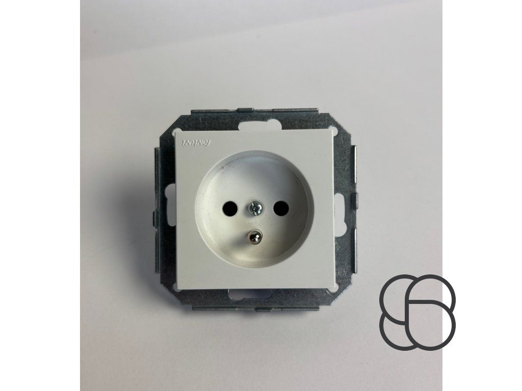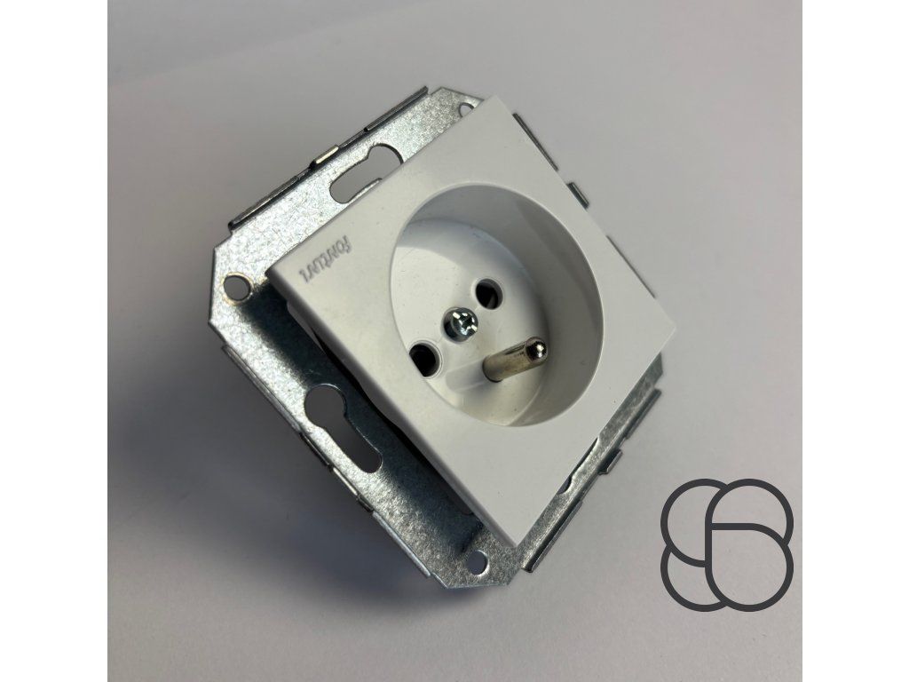 Zásuvka termoplastová F-37 se zemněním/bílá, rozměry bez rámečku 52x52 mm (s rámečkem 90x90 mm).
