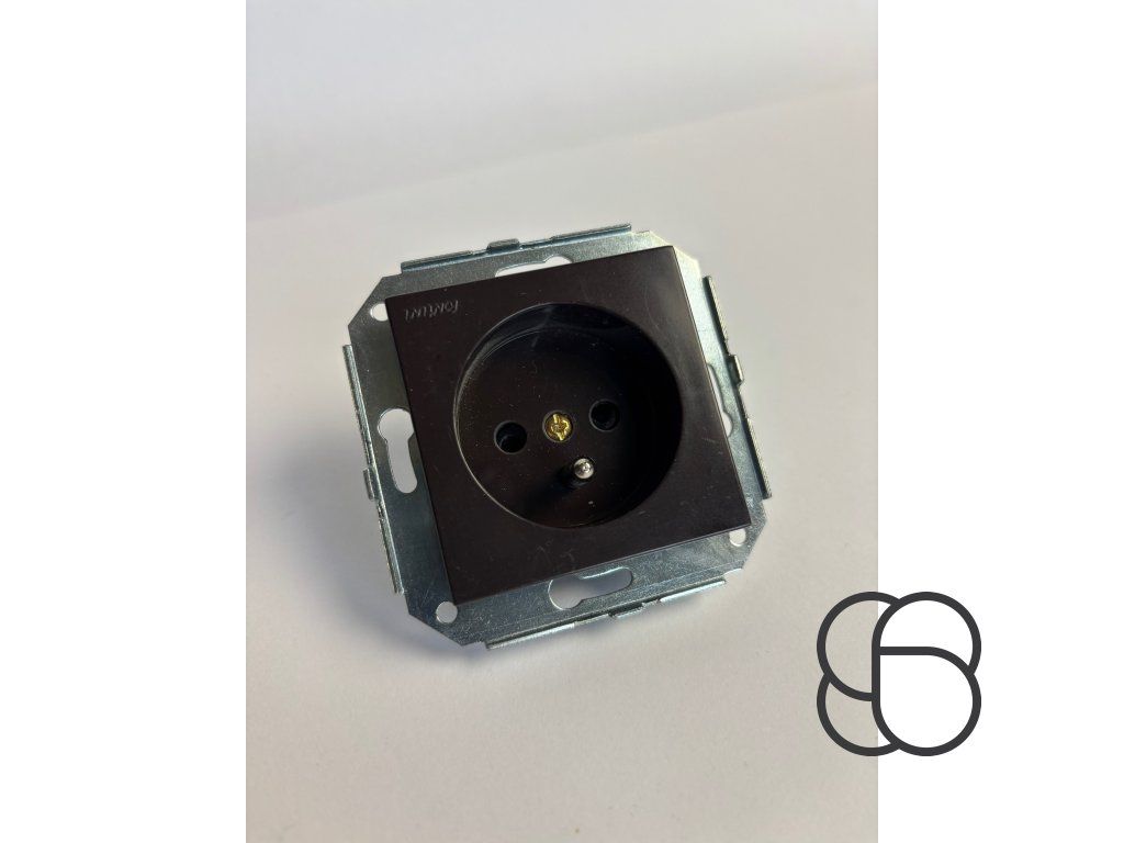 Zásuvka termoplastová F-37 se zemněním/hnědá, rozměry bez rámečku 52x52 mm (s rámečkem 90x90 mm).