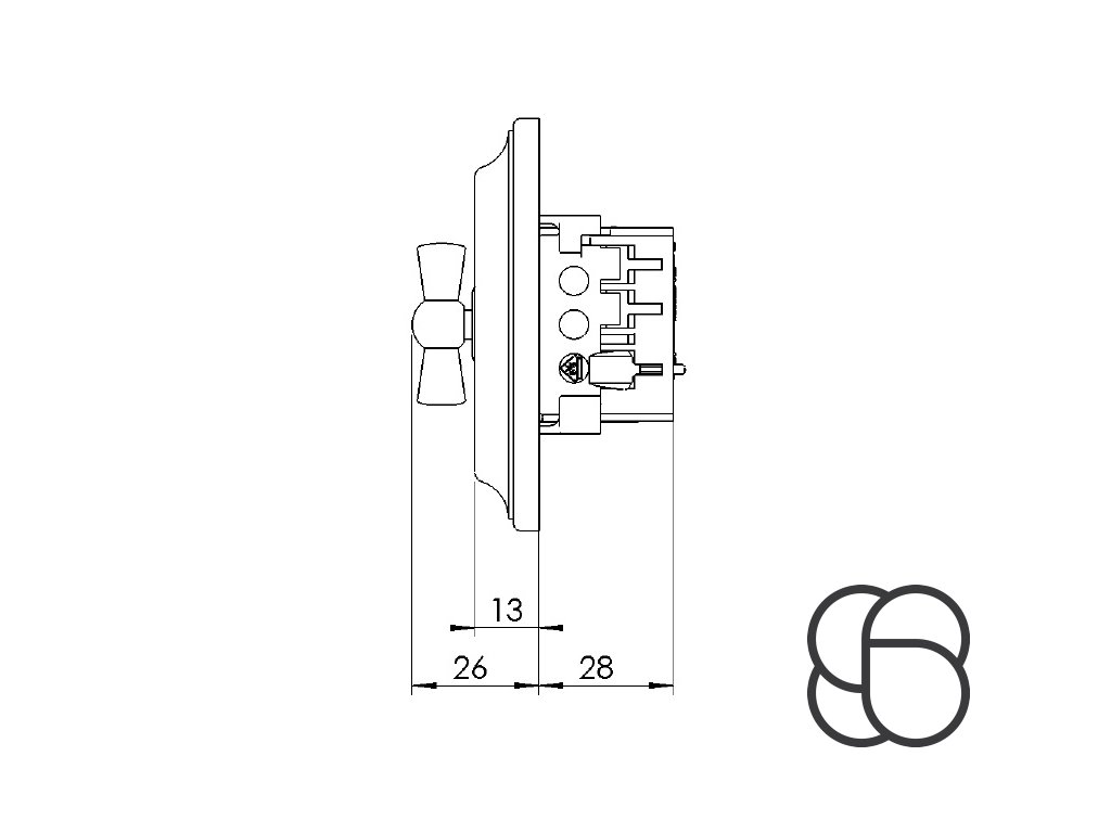 Retro termoplastový otočný vypínač Venezia bílý s niklovou kličkou; průměr vypínače 50 mm, s rámečkem 100 mm.