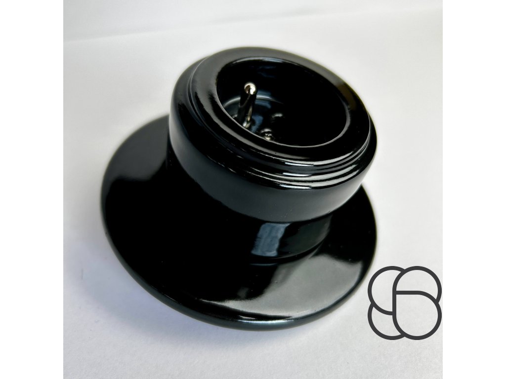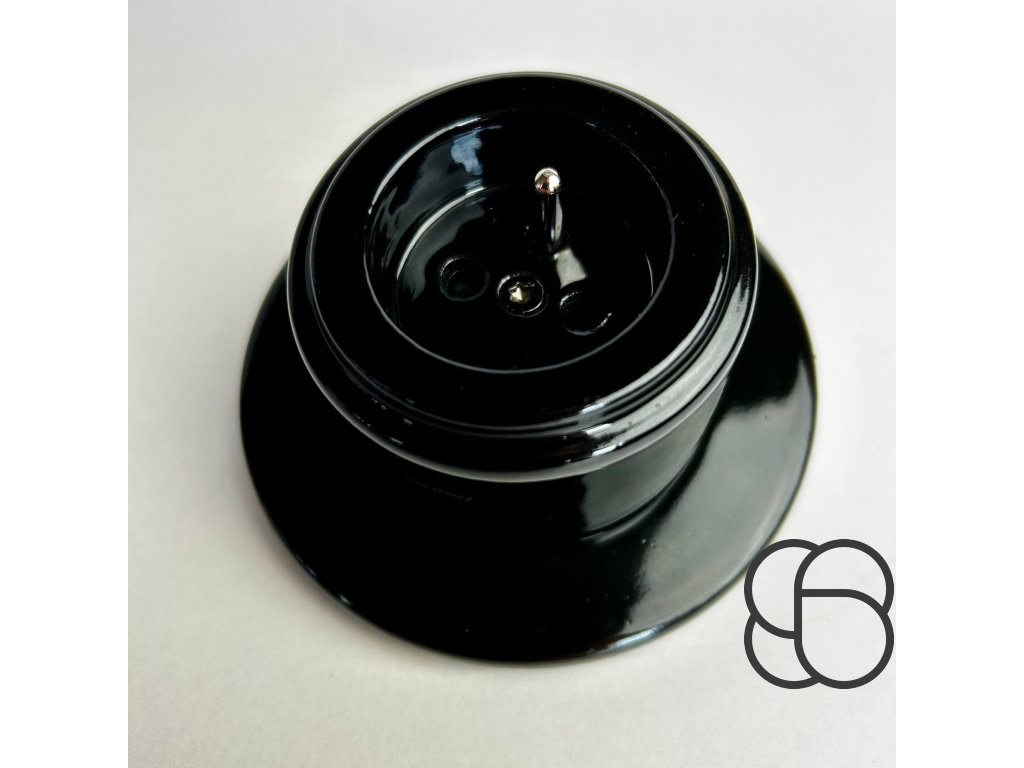 Moderní porcelánová zásuvka DO firmy Fontini z černého porcelánu určena pro povrchovou montáž. V sestavě s rámečkem DO v provedení černý porcelán.