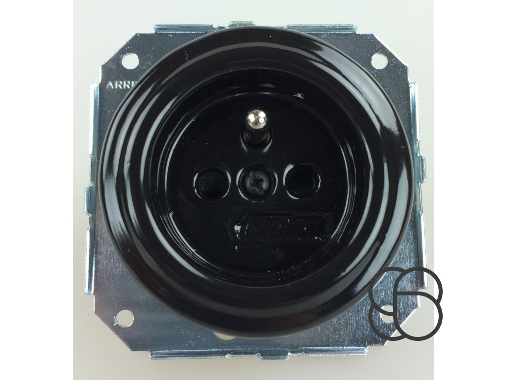 Retro zásuvka dvoupólová keramická Garby Colonial černá se středním zemnícím kolíkem. Lze kombinovat s rámečky Garby Colonial.