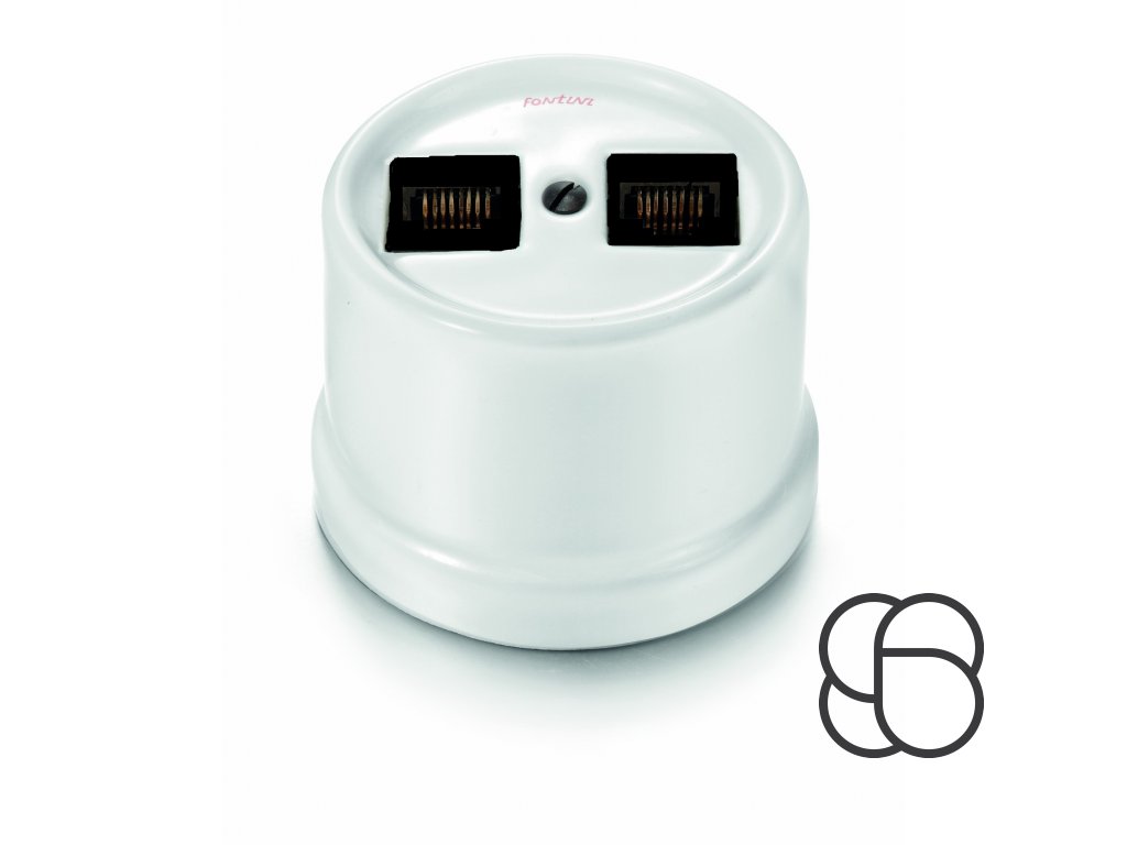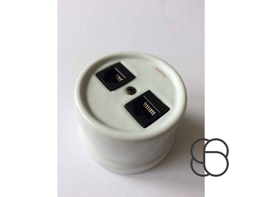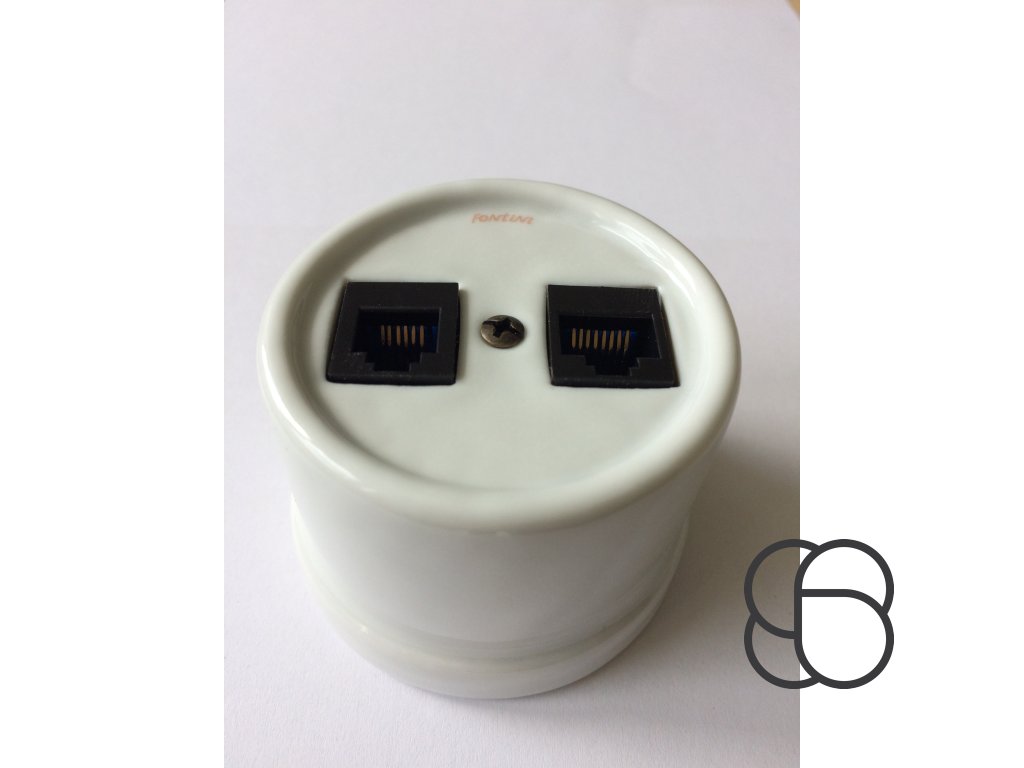 Retro porcelánová zásuvka GARBY se dvěma datovými přípojkami RJ-45/CAT 6 a s vývodem pro kabel ve dvou variantách (bílá, černá).