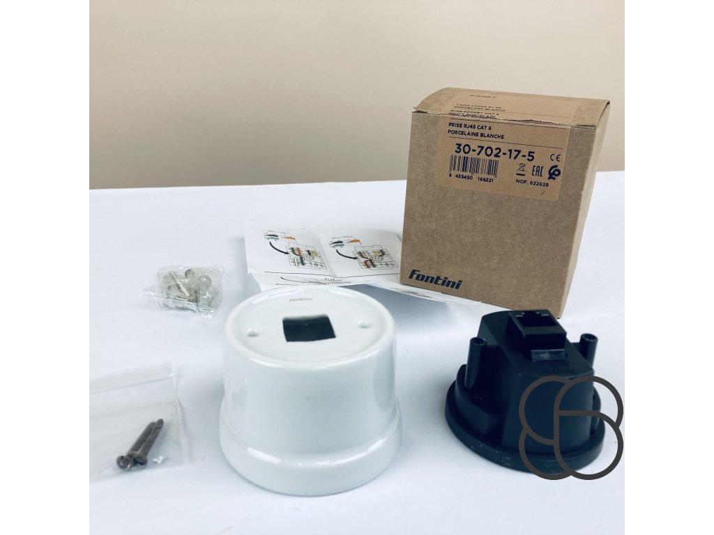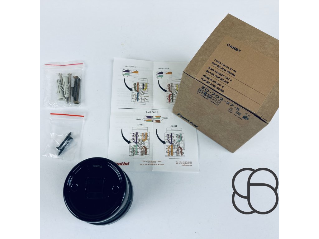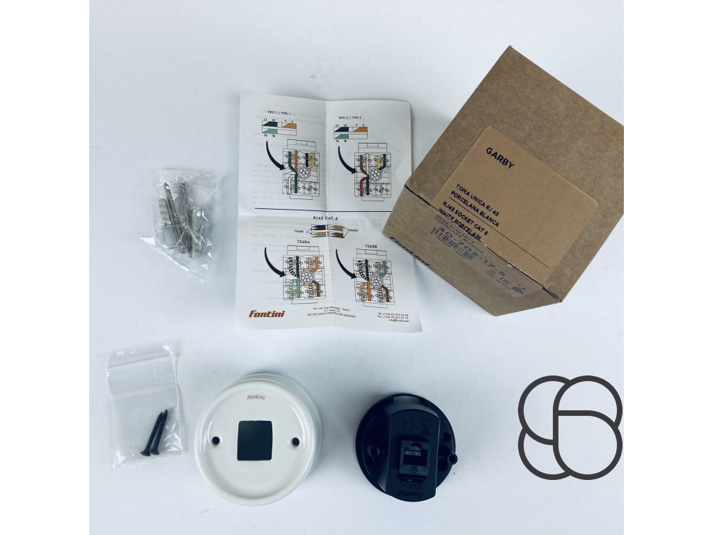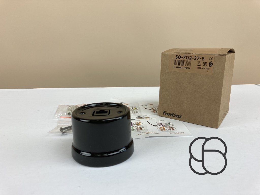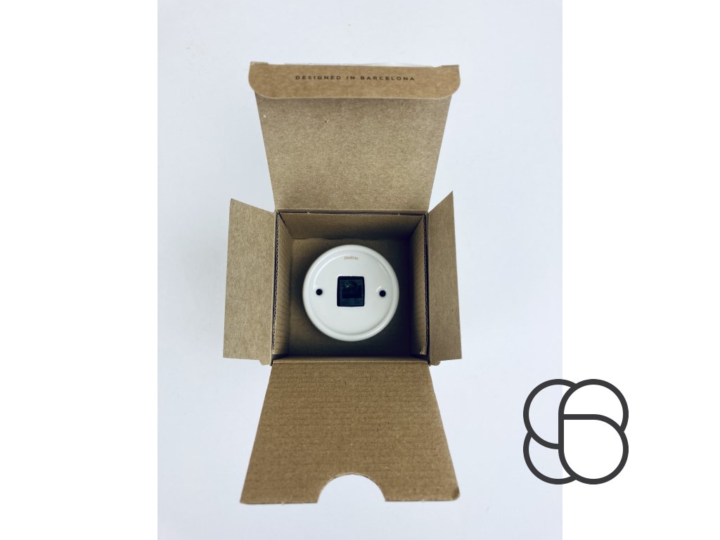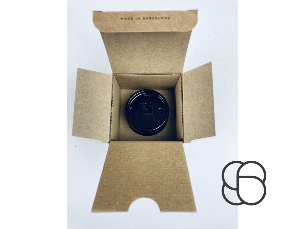 Retro porcelánová zásuvka GARBY s datovou přípojkou RJ-45/CAT 6 a bez vývodu pro kabel ve dvou variantách (bílá, černá).