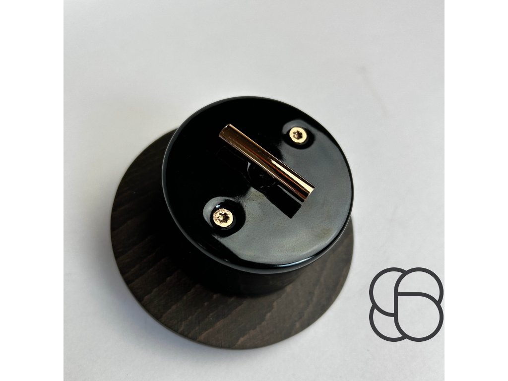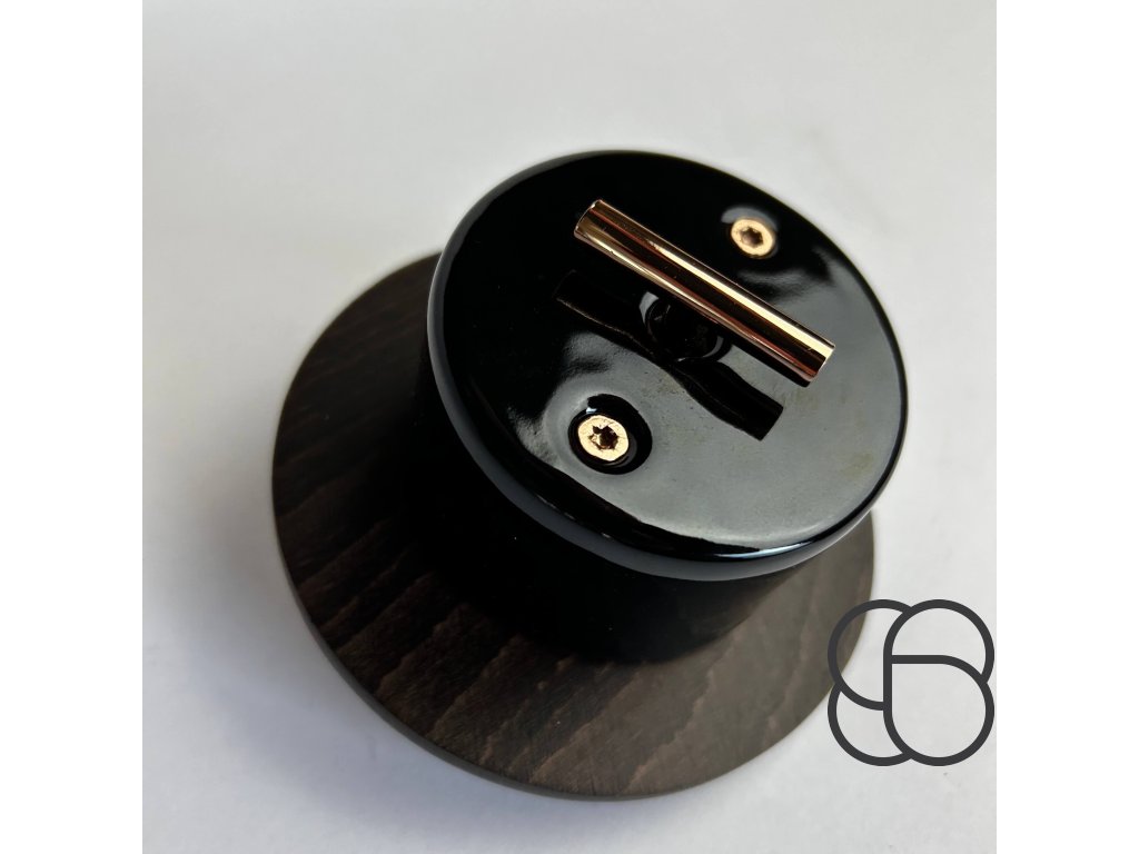 Porcelánový vypínač DO černý/klička měď + rámeček tmavý buk výprodej