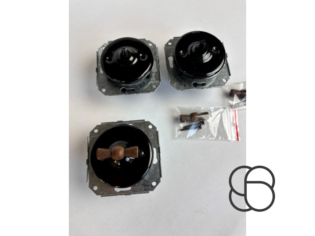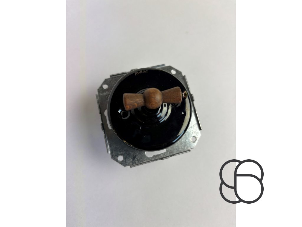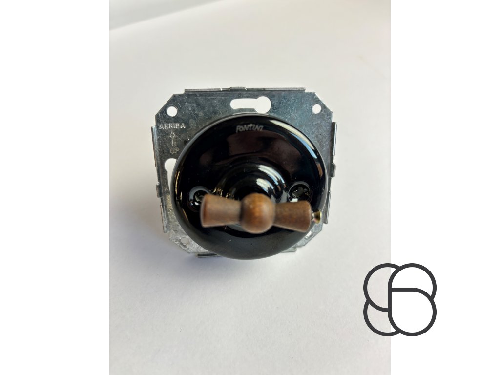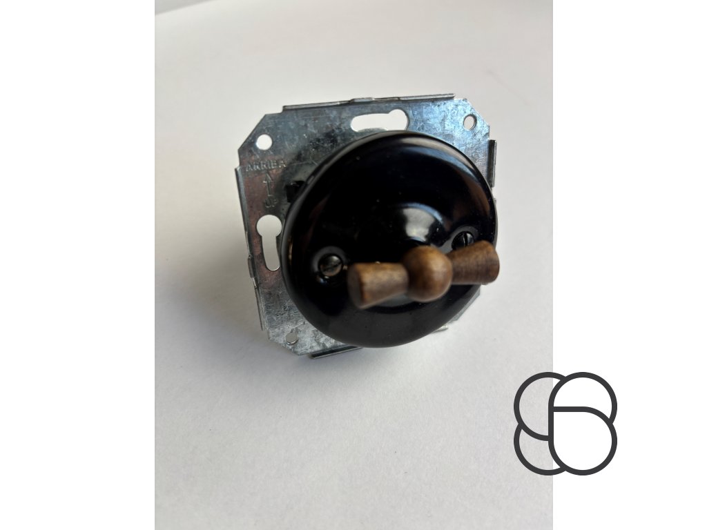 Porcelánový vypínač Garby Colonial černý/klička old wood - výprodej