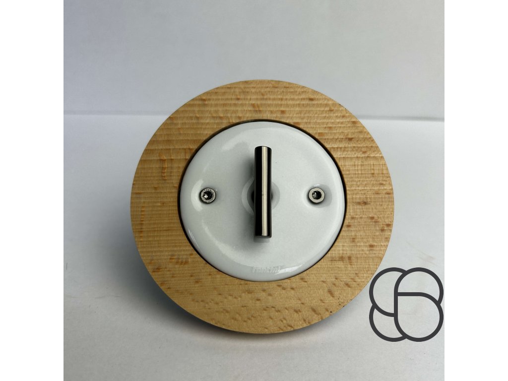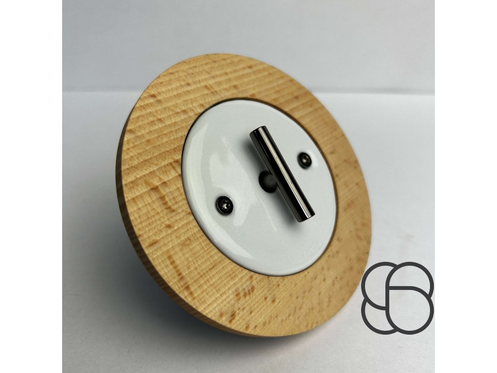 Porcelánový vypínač LOW bílý/klička tmavý nikl + rámeček natural - výprodej