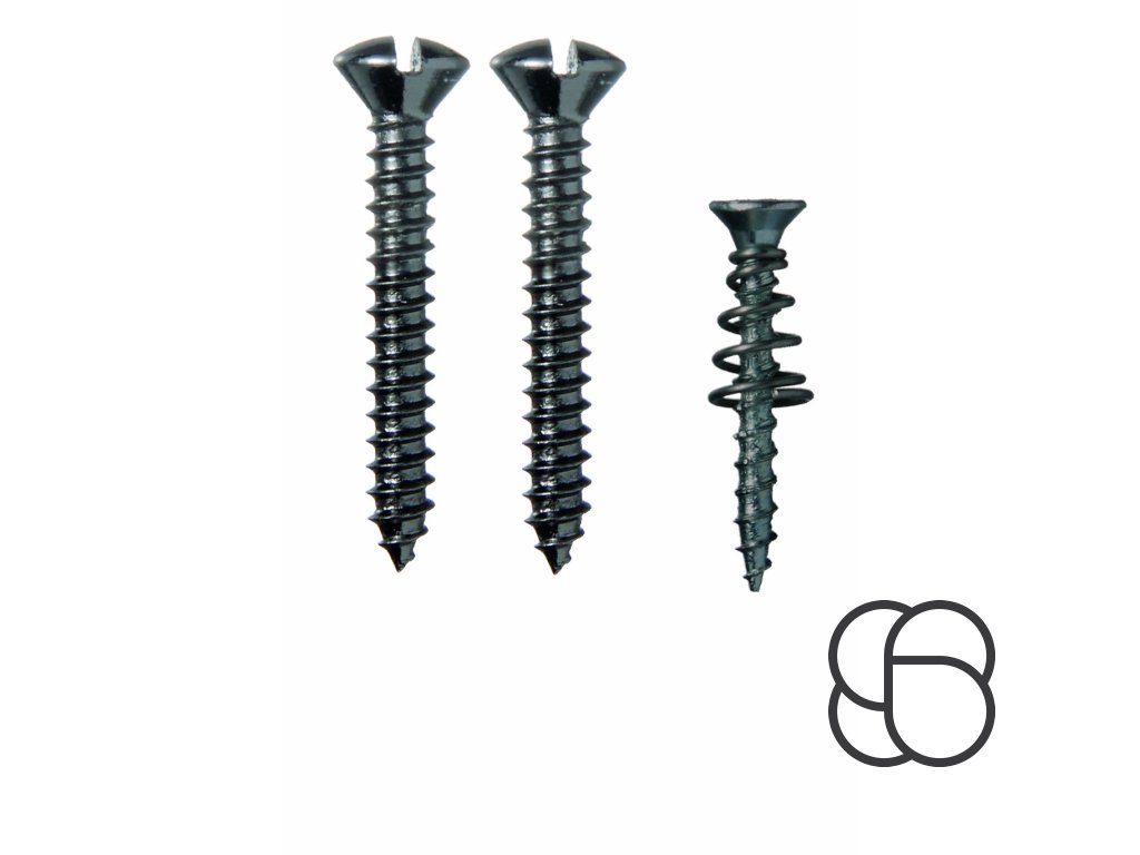Součástí balení je i sada tmavě niklových šroubů + dvě hmoždinky.