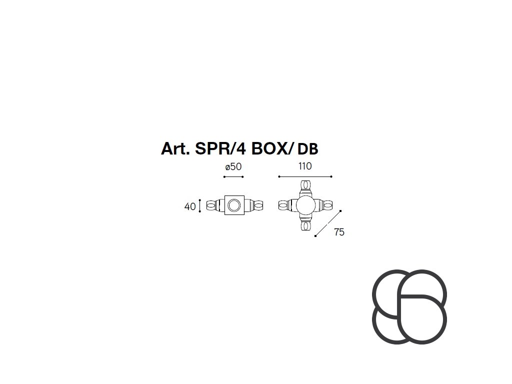 Světelné a propojovací SPR boxy pro sestavy retro rustikálních svítidel v celomosazné konstrukci v povrchové úpravě černá bronz. Svítidla se do sestav spojují jak propojovacími boxy s vývody tak světelnými boxy, do nichž jsou vsazena a vzájemně propojena za pomocí trubkového rozvodu (viz ilustrační obrázek v galerii). Přípojky pro spojovací trubky v průměru 16 mm.