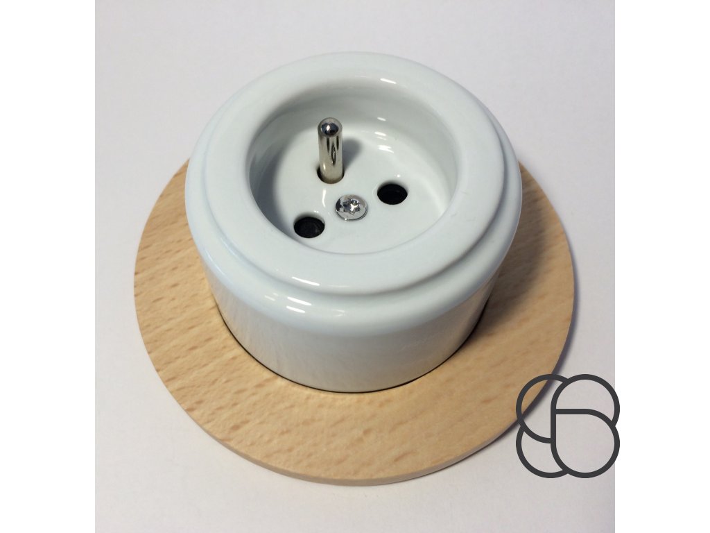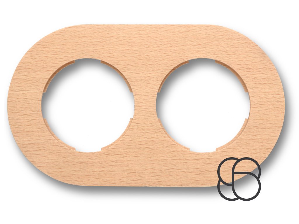 Dřevěný rámeček DO pro instalaci vypínačů a zásuvek z produktové řady DO, odstín dřeva buk. Součástí balení je i kovový adaptér pro připevnění rámečku na montážní krabici a dva šrouby.