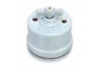 Retro termoplastový páčkový vypínač Venezia hnědý s anticky bronzovou páčkou; průměr vypínače 50 mm, s rámečkem 100 mm.