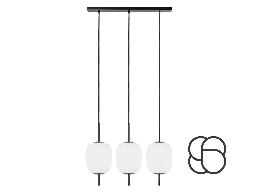 Závěsné trojité stropní designové svítidlo/lampa EPLI MINI 3 L se 3 oválnými mléčnými stínítky na kovové lištové konstrukci. Pouze v černé barvě.