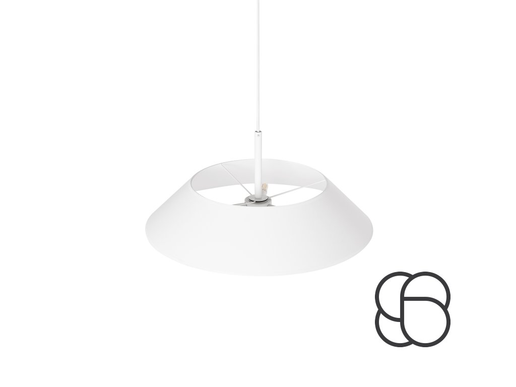 Závěsné stropní designové svítidlo/lampa SAKOSI B s kovovou základnou a látkovým krytem o průměru 50 cm. Vyrábí se ve 2 variantách černá nebo bílá.
