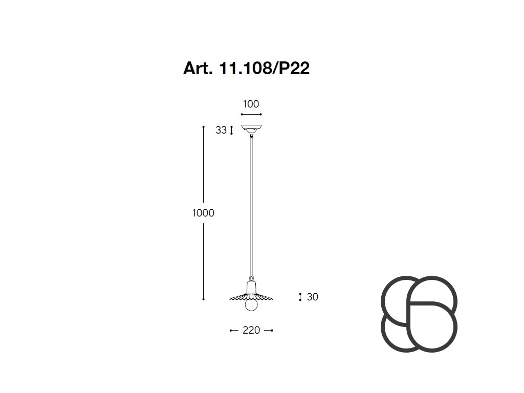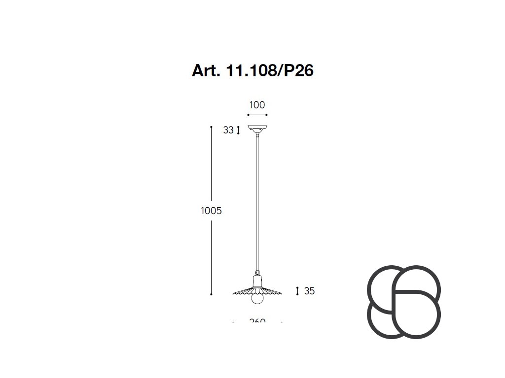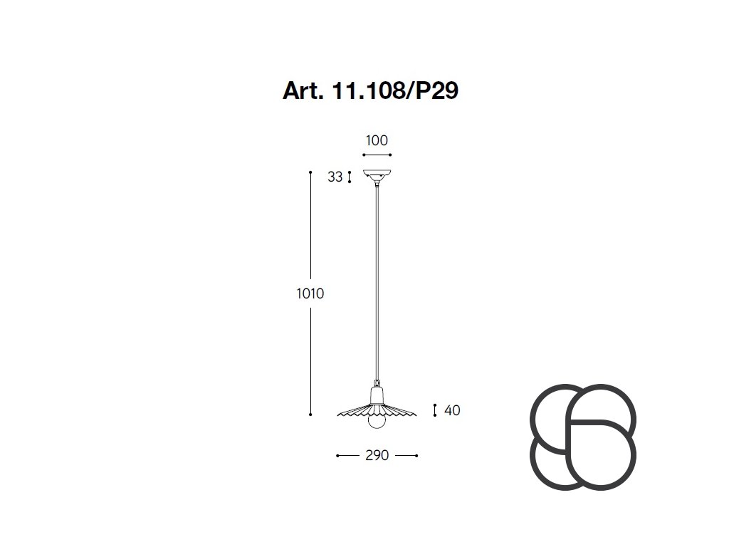 Závěsné stropní retro rustikální svítidlo Linea Civetta v celomosazné konstrukci. Zajímavě tvarované vlnité stínítko je vyráběno ve třech průměrech (malé 22 cm, střední 26 cm a velké 29 cm).